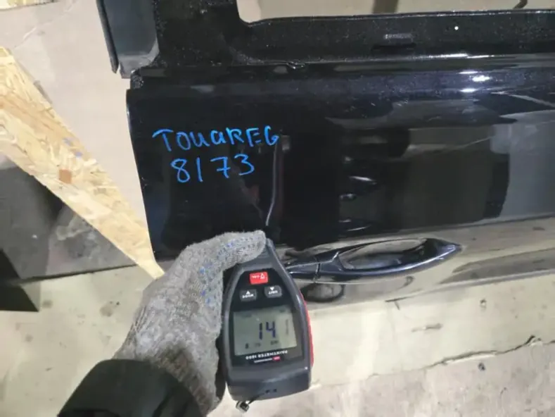 - Замер толщины лакокрасочного покрытия в пяти точках (центр, углы). Показатели должны быть в диапазоне 130-150 микрон, что соответствует заводскому стандарту VW для этой модели.